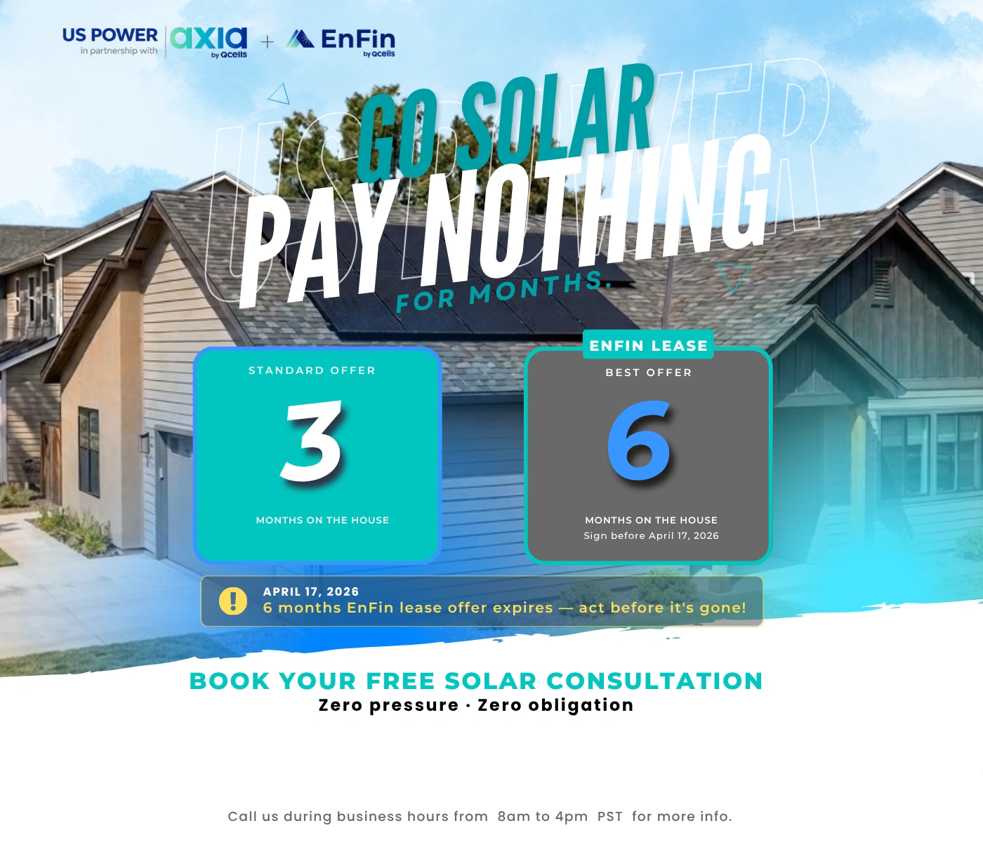 US Power es una firma de corretaje y gestión de proyectos que representa a los principales instaladores de energía solar y techos de California. Nuestro equipo de consultores expertos trabaja en estrecha colaboración con los clientes para encontrar los instaladores locales más adecuados, garantizando que cada proyecto se alinee con las necesidades únicas del cliente.